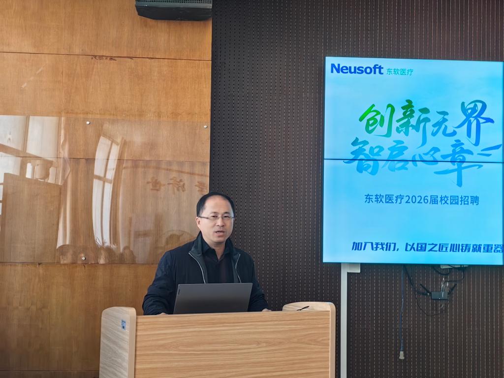 专场招聘宣讲会上,高哲以“创新无界智启心章”为主题,系统介绍了东软医疗从国产医疗影像设备自主研发到全球市场布局的发展历程,重点阐释了企业在技术创新与行业引领中的核心地位;李悦围绕招聘岗位的具体职责、职业晋升通道、企业人才培养机制及“薪酬+福利+关怀”的全方位保障体系进行详细说明,特别针对医学影像专业学生的能力匹配点与职业成长空间进行解读,引发学生浓厚兴趣。